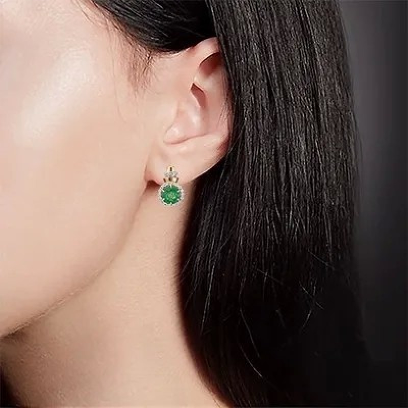 PLATINA Серьги с английским замком из красного золота 585 пробы c изумрудом и бриллиантами